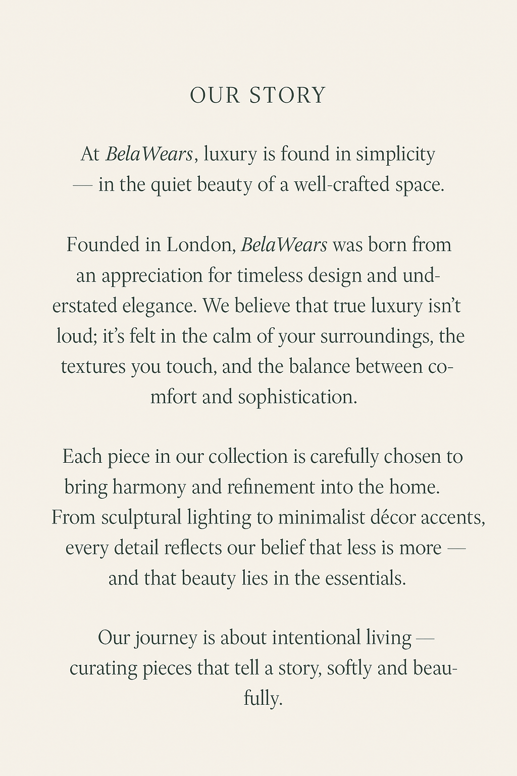 Born in London, BelaWears redefines the art of modern living through quiet luxury and refined simplicity.